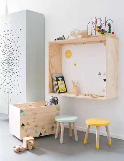 如果家里还有一只牙牙学语的娃娃,不妨拿出客厅一角,给他们画个圈圈,造个天堂。这样的儿童角,同样可以跟上面提到的双人工作台并存。